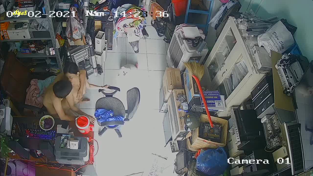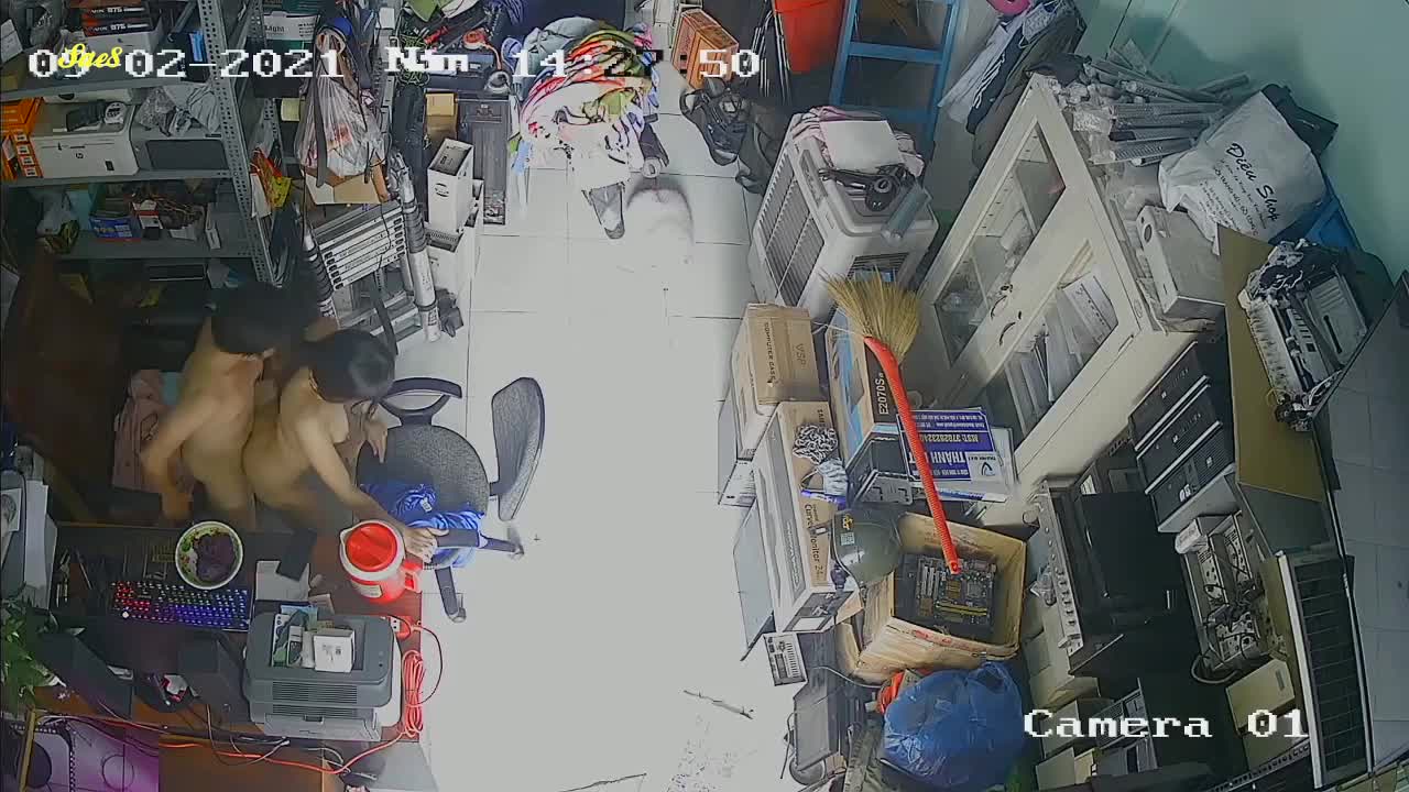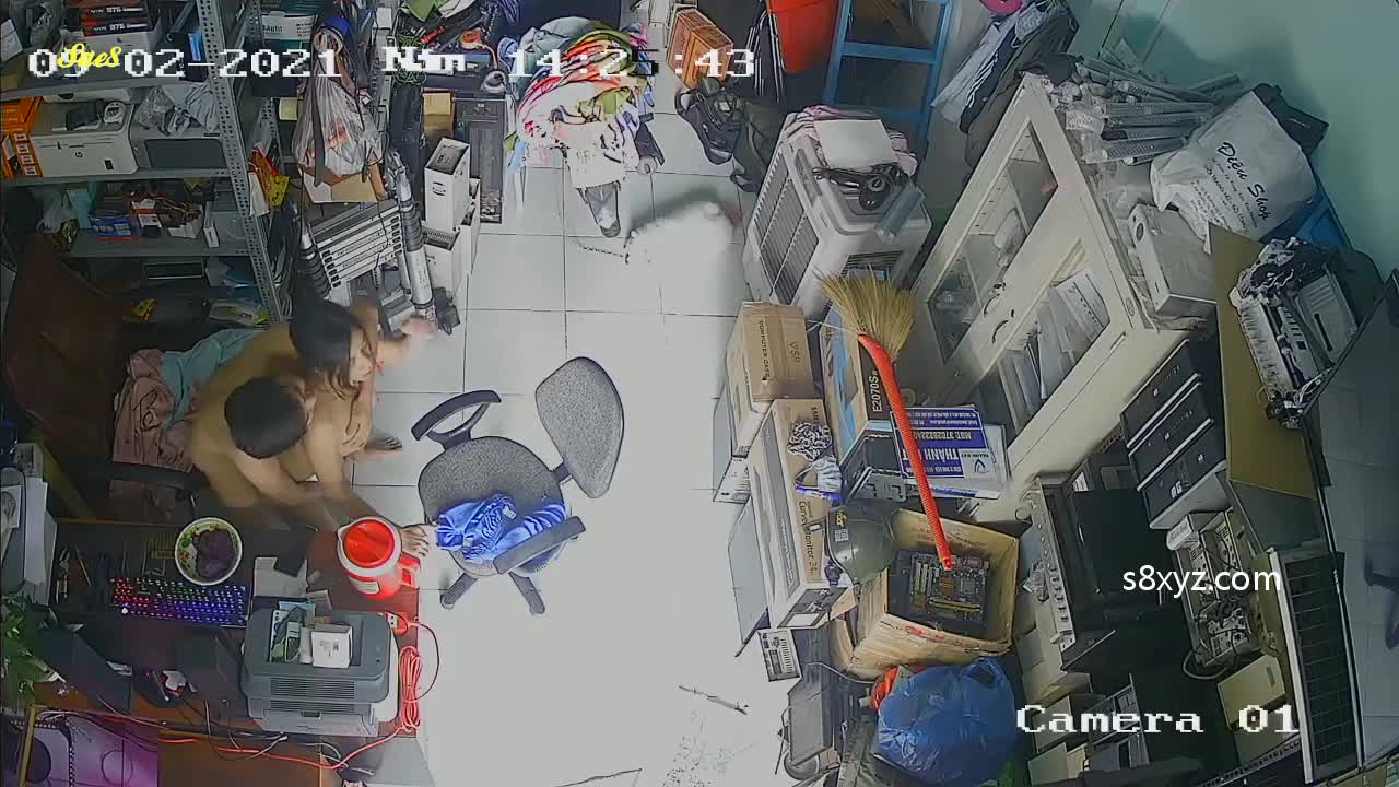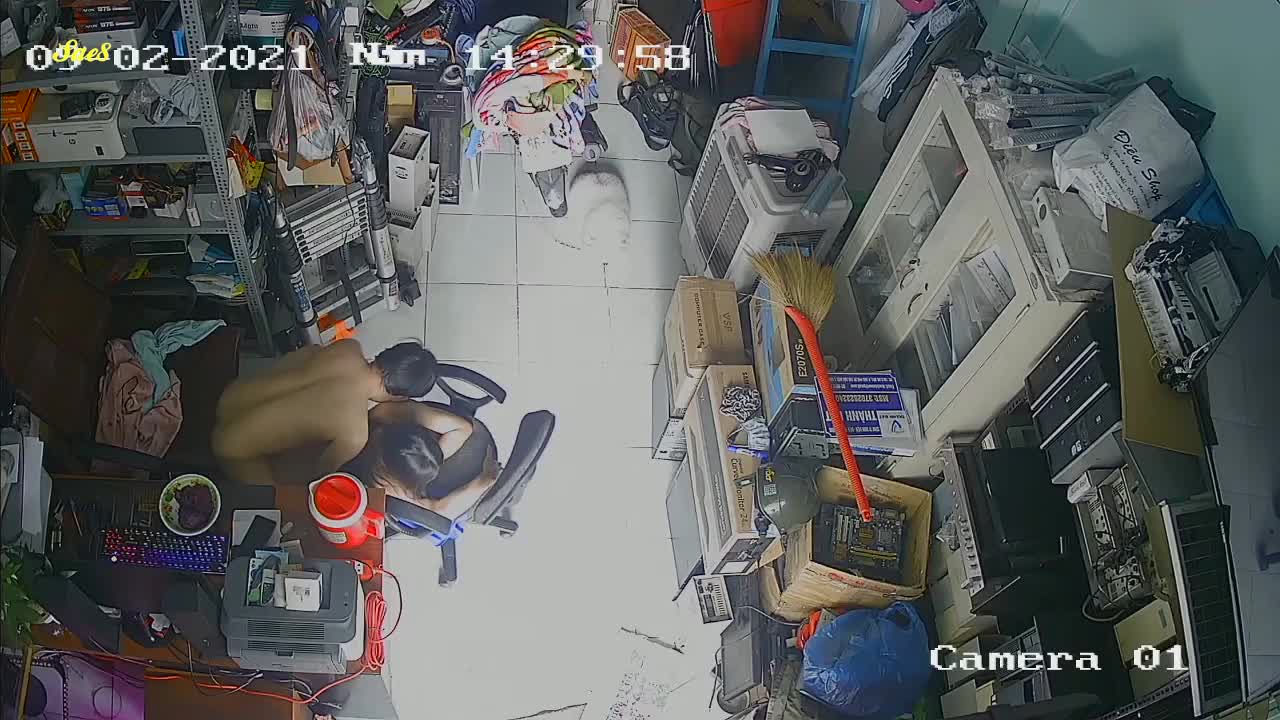 家庭摄像头泄密二手电脑配件老板大白天不做生意关门打炮。